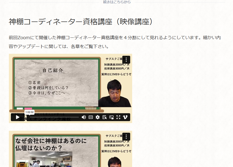 当初は、リアル開催のみでしたが、コロナウィルスの影響でリアル開催が難しくなり、Zoomを使って開催していました。しかし、Zoomの日程がなかなか合わない。というお声を頂き、オンライン版でいつでも、どこでも受講できるようにご用意させて頂きました。オンライン版で神棚コーディネーターになりたい方は、この後の有料コンテンツをご購入頂き、早速受講して下さい。